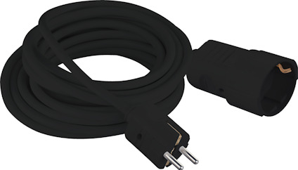 Jordad förlängningskabel för inomhusbruk. Både stickpropp och uttag är jordade.