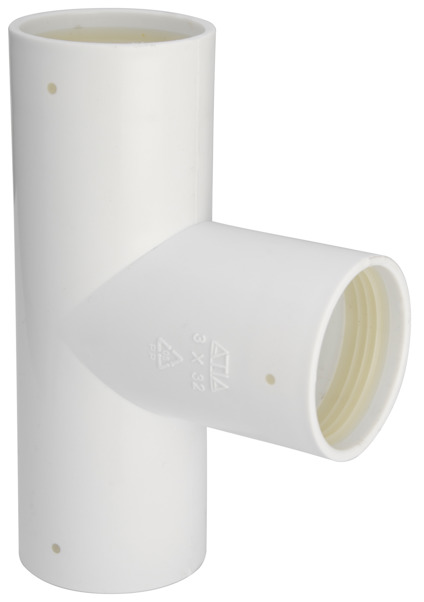 T-RÖR 32MM VIT PP MED GUMMITÄTNING