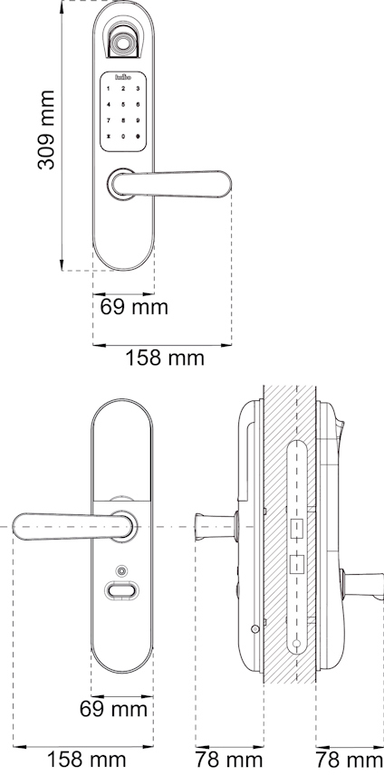 Typ Elektroniskt dörrlås Bredd (mm) 69 Färg Silverfärgad Längd (mm) 309 Material Stål Nyans Silver Modell Tribe 2 Passar till dörrtjocklek (mm) 58-75