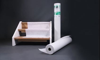 Trapp- och golvskydd T-Emballage trapp-och golvskydd är en slitstark självhäftande skyddsduk för hårda ytor såsom golv, trappor, bänkskivor m.m. Produkten är tät mot vätskor. Trapp- och golvskydd har en antislipbehandlad sida vilket gör att det inte behövs någon tejpning. Duken fäster även mot sitt eget material vilket är bra då man behöver täcka stora ytor.