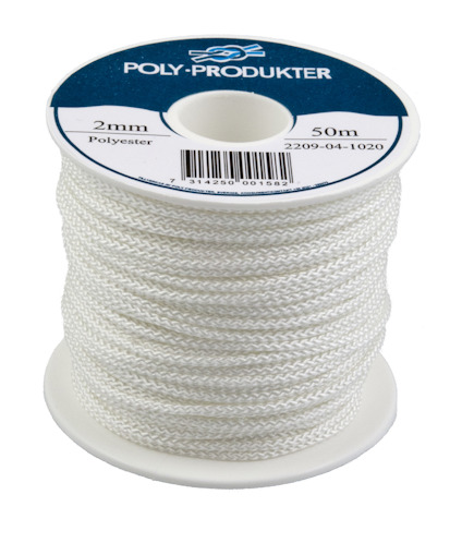 Flätad polyestersilkelina i olika färger. En stark och smidig lina. UV-stabiliserad. Sjunker i vatten. Slitstark. Levereras på mini-spolar.