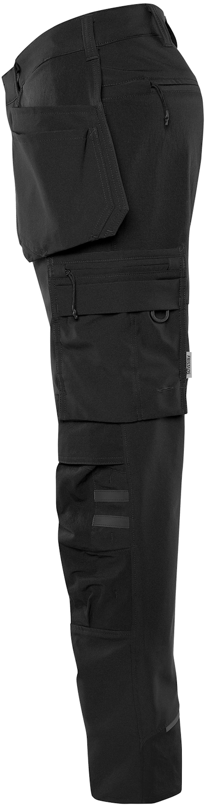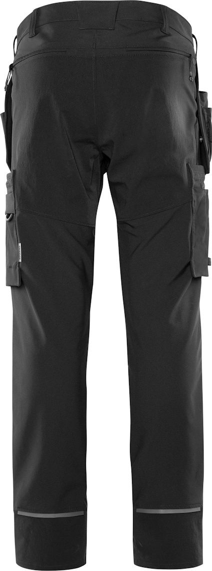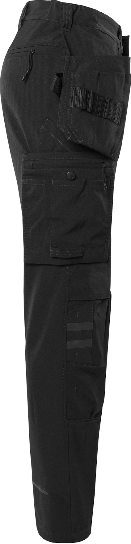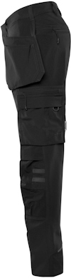 Lättviktsmaterial med 4-vägsstretch / Slitstarkt ripstop-material med 4-vägsstretch fram och bak / Invändig sidoresår i midjan / 2 löst hängande förstärkta spikfickor, den ena med 3 mindre fickor och verktygshällor, den andra med extra ficka / Dold knapp i midjan / 2 framfickor / 2 bakfickor med dragkedja / Dubbel förstärkt grensöm / Hammarhank / Tumstocksficka i ripstop stretch, benficka med tryckknapp, ficka med dragkedja, pennficka och 2 verktygsfickor samt knapp och hälla för kniv / Benficka med tryckknapp, ficka med dragkedja samt telefonficka, id-kortsficka och D-ring under lock / Knäfickor i ripstop stretch med öppning utifrån, uppifrån / Knäskydden i knäfickorna kan höjdjusteras / Ripstop-förstärkt benslut / Reflexdetaljer / Godkänd enligt EN 14404 tillsammans med knäskydd 124292 (9200 KP) / OEKO-TEX®-certifierad.