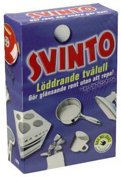 Löddrande stålull. Svinto är en kvalitetsprodukt där kombinationen stålull och tvål ger en mycket effektiv rengöring utan att repa. Svintos skonsamhet är dokumenterad av ett test hos Statens Provningsanstalt. Det visar att Svinto rengör skonsammare än annan tvålull och betydligt skonsammare än kökssvampar.