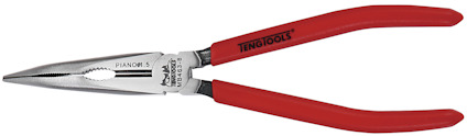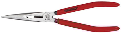 Av krommolybdenlegerat stål. 80° skärvinkel. Enkel led. Polerat huvud. Långa, raka käftar. Räfflad gripyta. Plastklädda skänklar. DIN 5745.