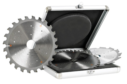 Praktiskt cirkelsågbladset i aluminiumlåda Praktiskt cirkelsågbladset med tre klingor i aluminiumlåda