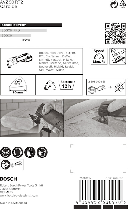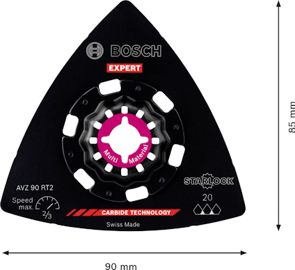EXPERT Sanding Plate (EXPERT slipplatta) AVZ 90 RT2 för multiverktyg 90 mm Långvarig slipning med Carbide Technology - Små men tuffa slipjobb för att ta bort gammalt material och förbereda ytor inför andra arbeten kan vara nästan omöjligt med konventionella slipar eller för hand. Även om du lyckas nå ytan förstör jobben snabbt sandpappret. Men med EXPERT Sanding Plate (EXPERT slipplatta) kan du nå in i hörn och slipa svåra material med ditt oscillerande multiverktyg. Med hjälp av Bosch Carbide Technology har hårdmetallkorn hållbart fästs i ytan. De vassa kornen behåller sin effekt under hela den långa livslängden, eftersom du kan rengöra dem med lösningsmedel. EXPERT Sanding Plate (EXPERT slipplatta) är utformad för flera material och användare. De grova, öppna kornen hos RT2 (kornstorlek 20) lämpar sig bäst för att ta bort murbruk under plattor, avlägsna mattlim eller grov bearbetning av trä. RT4 (kornstorlek 40) är avsedd för borttagning av tjocka lager färg, men kan också användas till murbruk och lim om så behövs. RT6 (kornstorlek 60) är färgspecialisten, medan RT10 (kornstorlek 100) passar utmärkt till slipning och underarbete på rena träytor. Starlock-fäste för optimal kraftöverföring och smidiga bladbyten på tre sekunder.