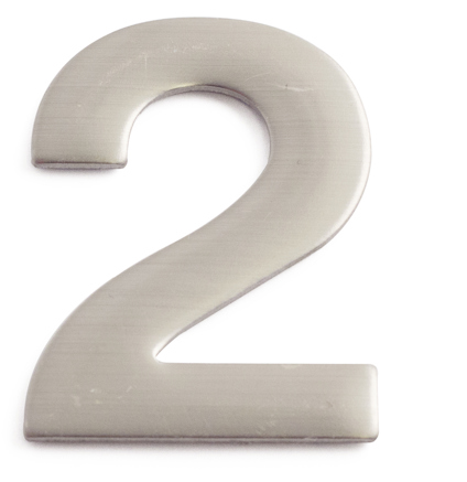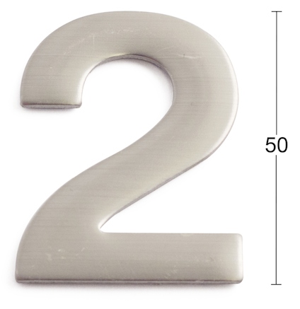 Siffra 2 av rostfritt stål. För markering av husnummer, brevlådor osv. Självhäftande 3M-tejp som fäster på de flesta underlag, som stål, glas, plast, brevlådor osv. Höjd 50 mm, tjocklek 3 mm.
