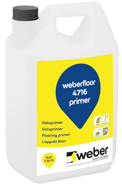 Weberfloor 4716 Primer är en dispersionsprimer, spädbar med vatten, avsedd för Webers hantverks- och avjämningsprodukter. Ingen inblandning av ammoniak förekommer i produkten. Weberfloor 4716 har en god alkalibeständighet och goda vidhäftningsegenskaper.